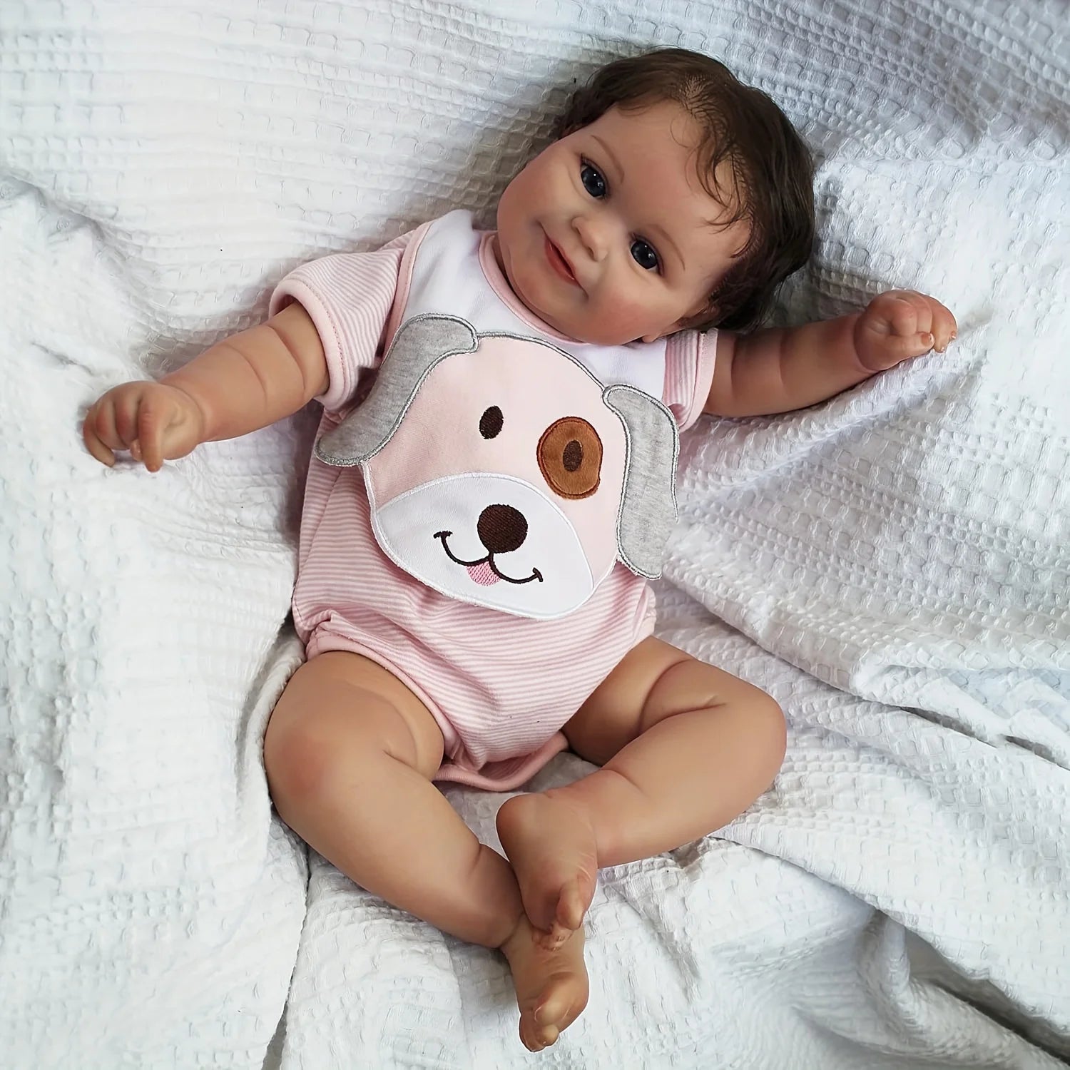 Meet Emma, a sweet and lifelike reborn baby girl doll designed with meticulous attention to detail. Measuring approximately 19–20 inches (43–50 cm), Emma has a gentle expression and realistic proportions, making her perfect for collectors, play, or display. Her soft touch and delicate features bring the charm of a real newborn to any collection.